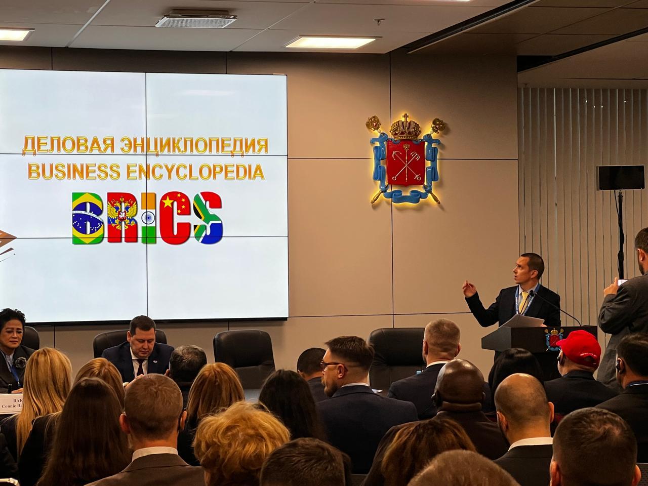 Павел Царев обратился к участникам форума с приветственным словом и рассказал о проекте "Деловая энциклопедия БРИКС", который реализуется компанией Африка Консалтинг совместно с Международным муниципальным форумом БРИКС и Международной организацией развития БРИКС.